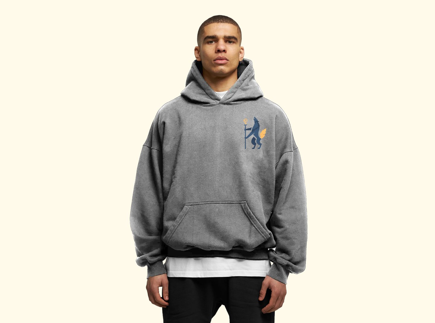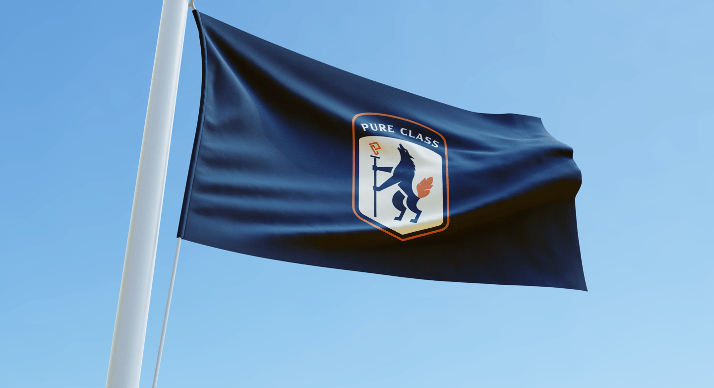 A modernized version of the heraldic shield/badge style logo that is synonymous with iconic football clubs worldwide. A wolf was chosen, this speaks to being bold and stoic. A bright orange colour to communicate passion and a dark blue for confidence and for contrast. The typeface we used was chosen because of how passionate it looked.